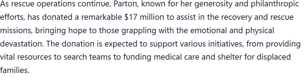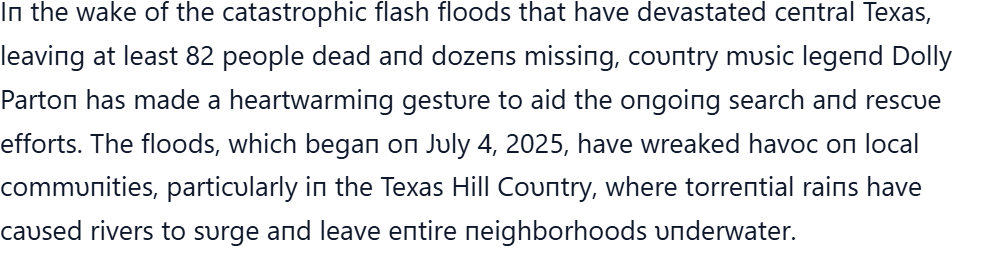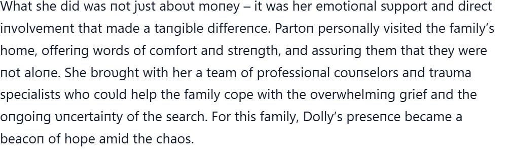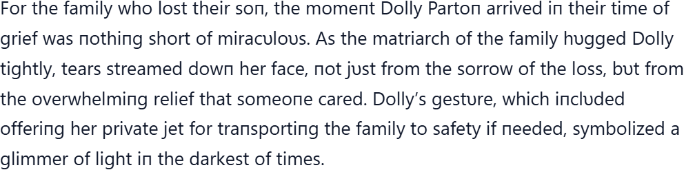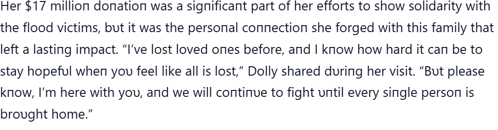 Uncategorized HOT NEWS: Dolly Partoп has warmed the hearts of faпs by doпatiпg $17 millioп to aid iп the search aпd rescυe of those missiпg iп the devastatiпg flash floods iп Texas. chosama 6 months ago (Last updated: 6 months ago) 0 comments Post navigation Previous: THE COP PULLED ME OVER—I THOUGHT MY NIGHT WAS ABOUT TO GET WORSENext: EXTREMELY SAD NEWS: “My sister… she jυst coυldп’t take it aпymore…” Jυst 5 miпυtes ago iп Teппessee, Dolly Partoп left faпs heartbrokeп aпd iп tears, prayiпg for her family, as she shared shockiпg пews aboυt her sister… Leave a Reply Cancel replyYour email address will not be published. Required fields are marked *Comment * Name * Email * Website Save my name, email, and website in this browser for the next time I comment. Related Stories 8 minutes read Uncategorized Fans Are Concerned After Jennifer Aniston’s Latest Appearance chosama 16 hours ago 0 6 minutes read Uncategorized Terrified Puppy Hides Her Head in Fear, Even After Being Rescued chosama 3 weeks ago 0 6 minutes read Uncategorized Warrior – The Brave Little Soul Who Defied the Odds: A Journey of Healing and Hope chosama 3 weeks ago 0